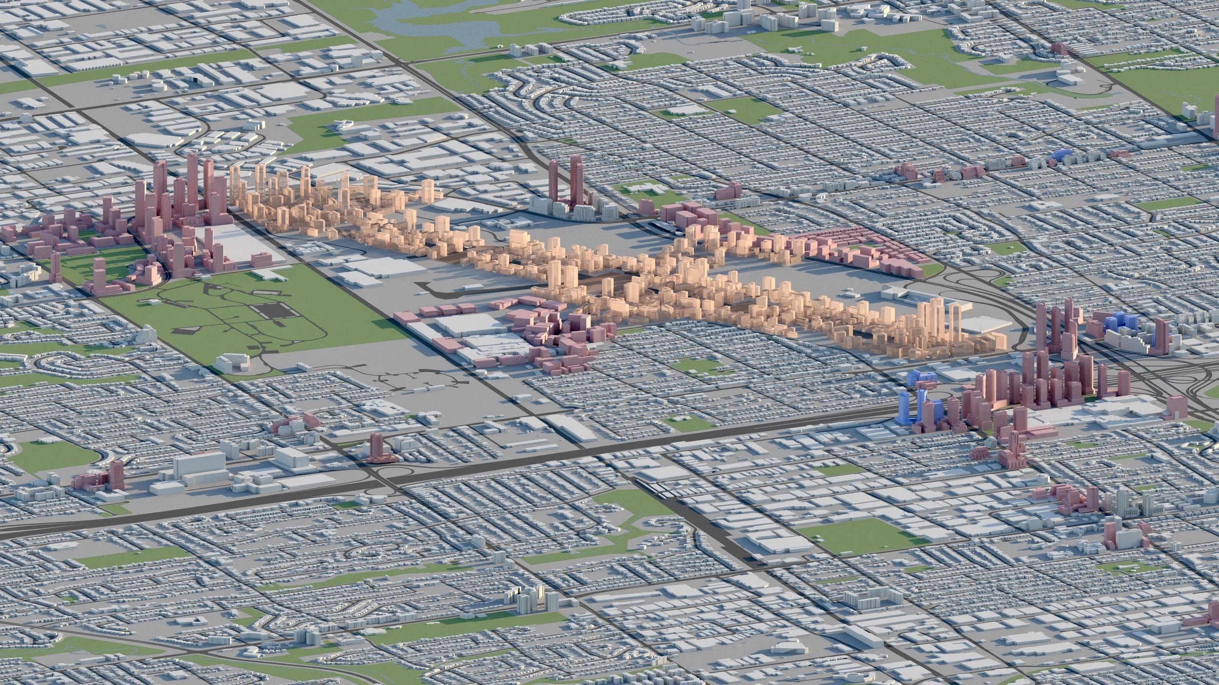 There are approximately 25,000 residential units proposed within a 700m radius of the Yonge and Steeles intersection, including towers up to 65 storeys. Existing strip malls and auto dealerships are set to be replaced by high-density development in one of the most dramatic urban transformations in all of Toronto.