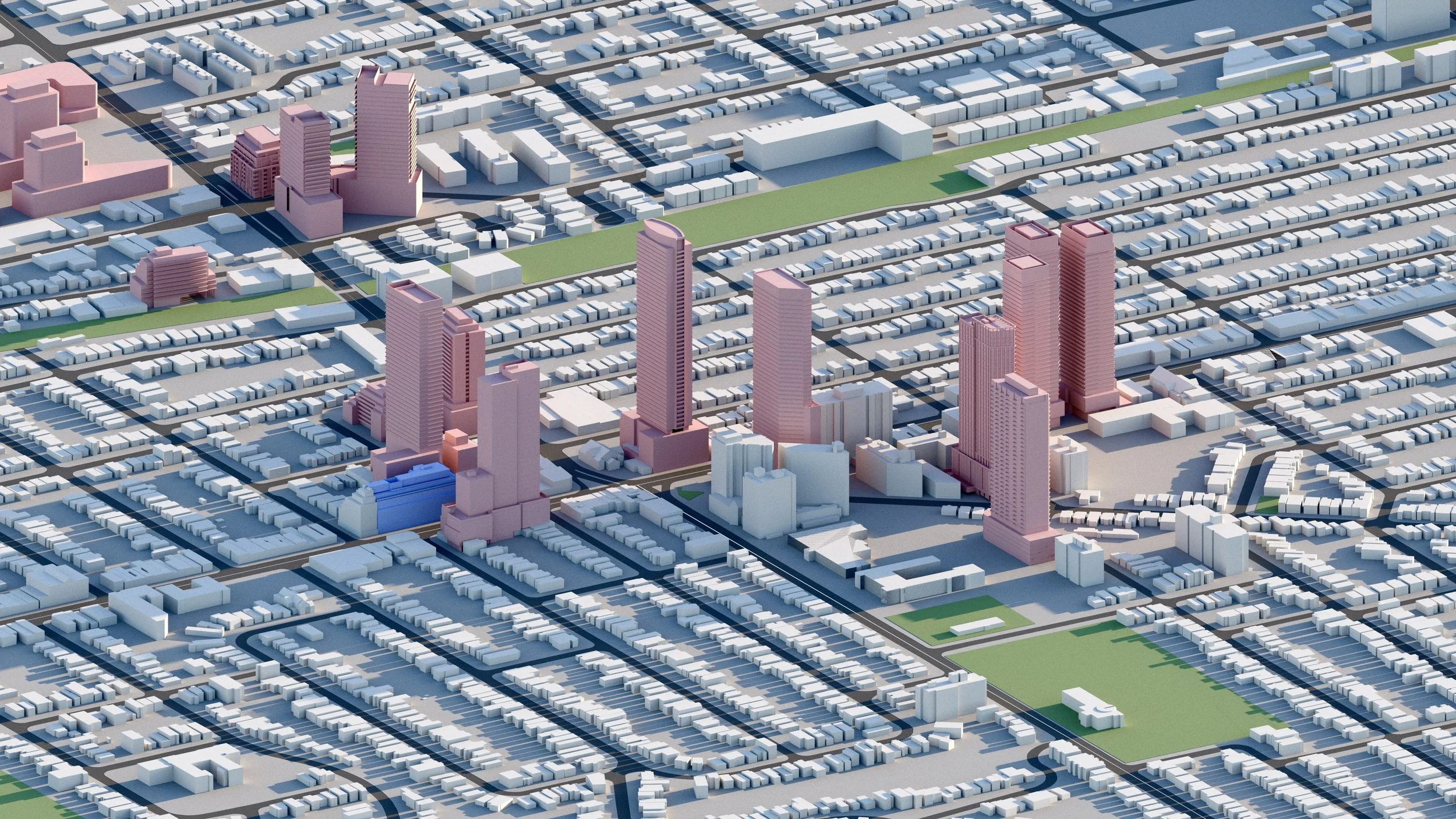 A number of infill developments planned for Toronto’s High Park neighbourhood, where more than 2,400 residential units are planned, including towers up to 41 storeys.